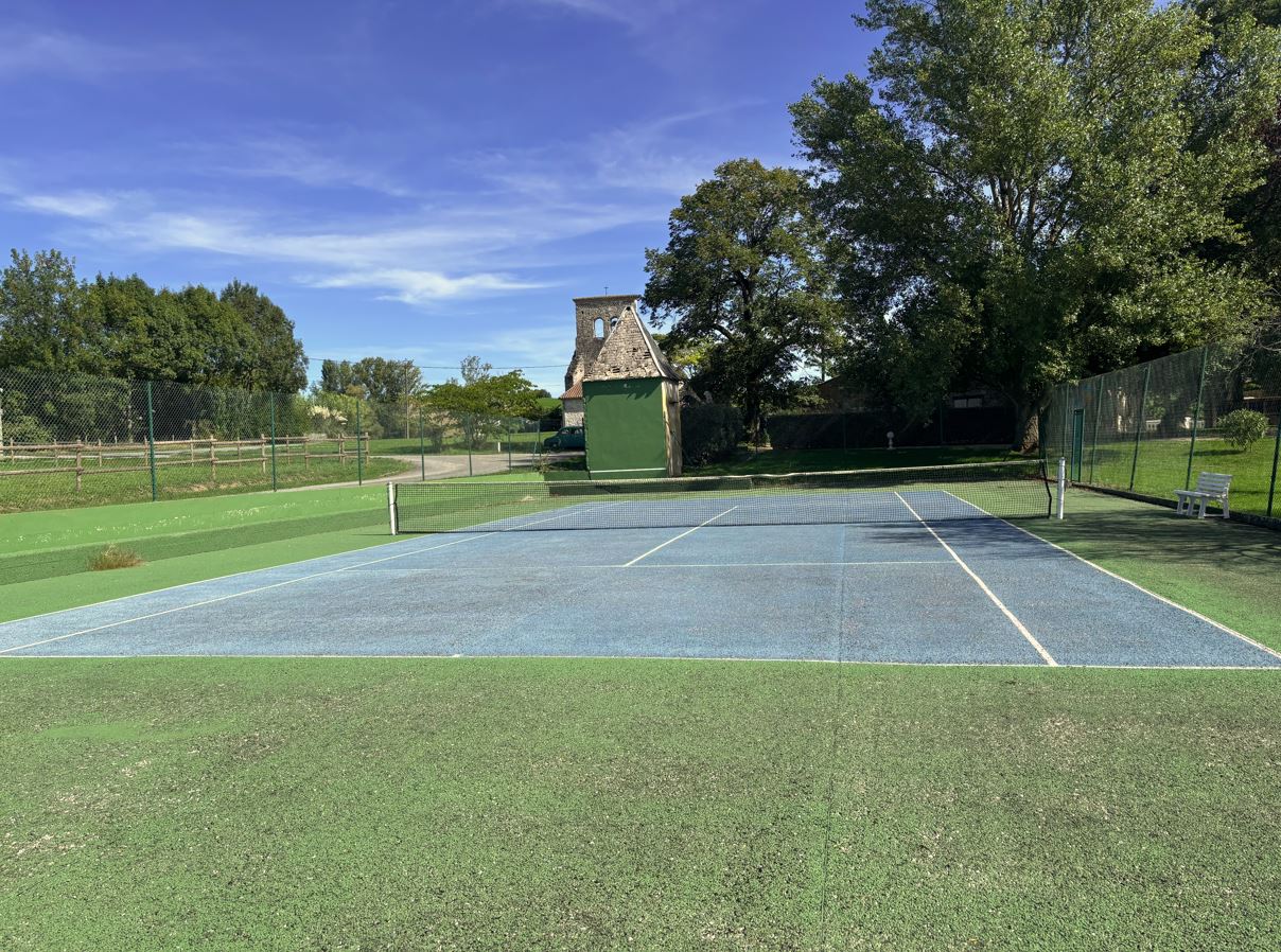 Véritable havre de paix, avec ses deux piscines sécurisées dont une à débordement et pataugeoire dédiée aux gîtes, son tennis et son étang avec son îlot, cette demeure confortablement installée sur ses 1.58 hectares de verdure est entièrement clôturée et arborée. La même rigueur et attention leurs sont apportées.