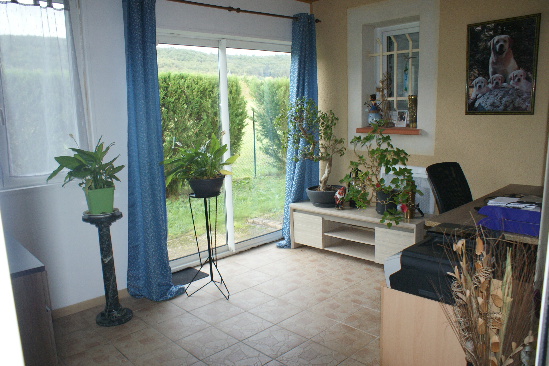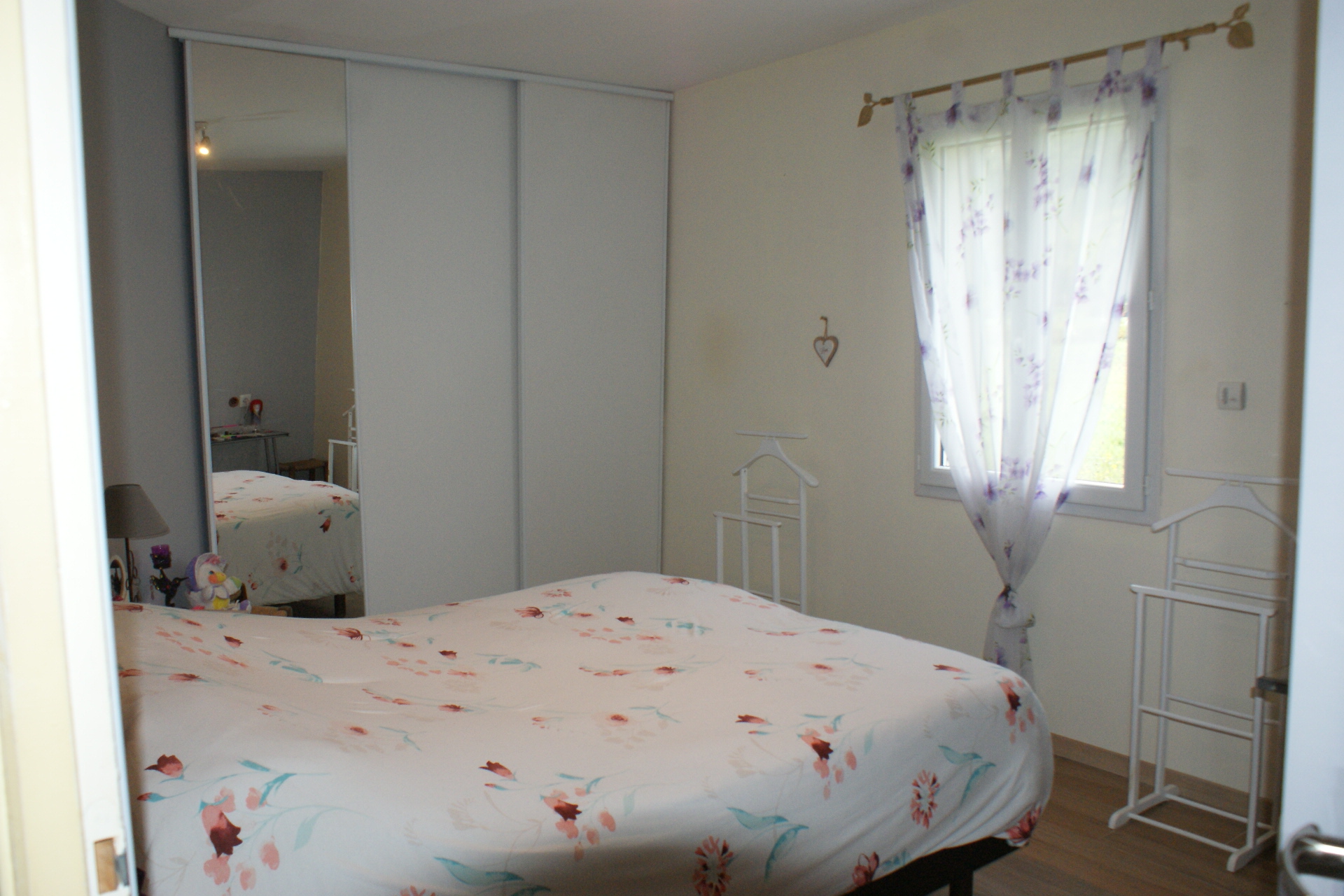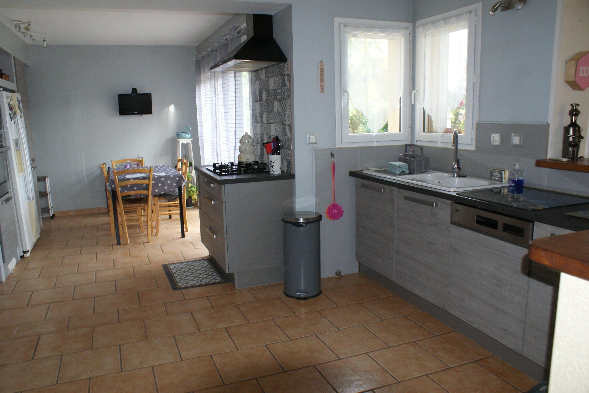 Maison de plain-pied de 138 m² habitables comprenant un séjour avec poêle à bois, une cuisine ouverte, un dégagement, une salle d'eau, un wc, 3 chambres dont une avec dressing, une véranda et une buanderie.