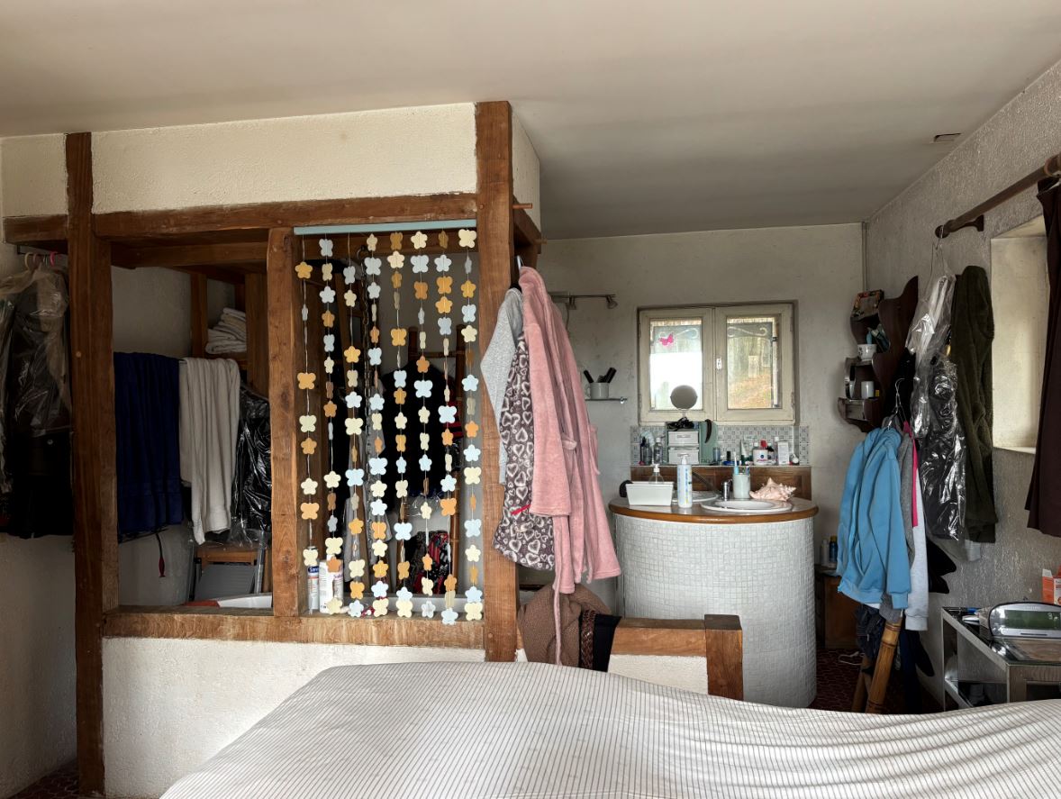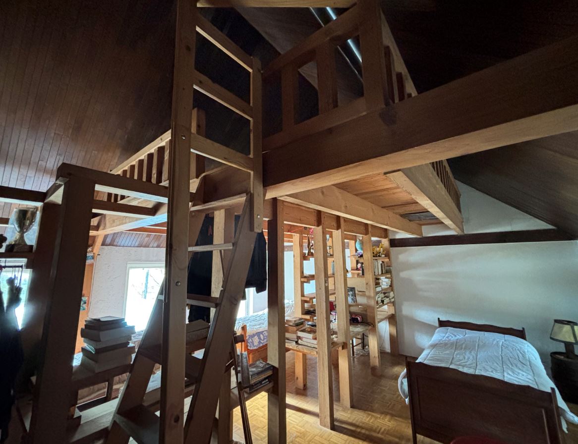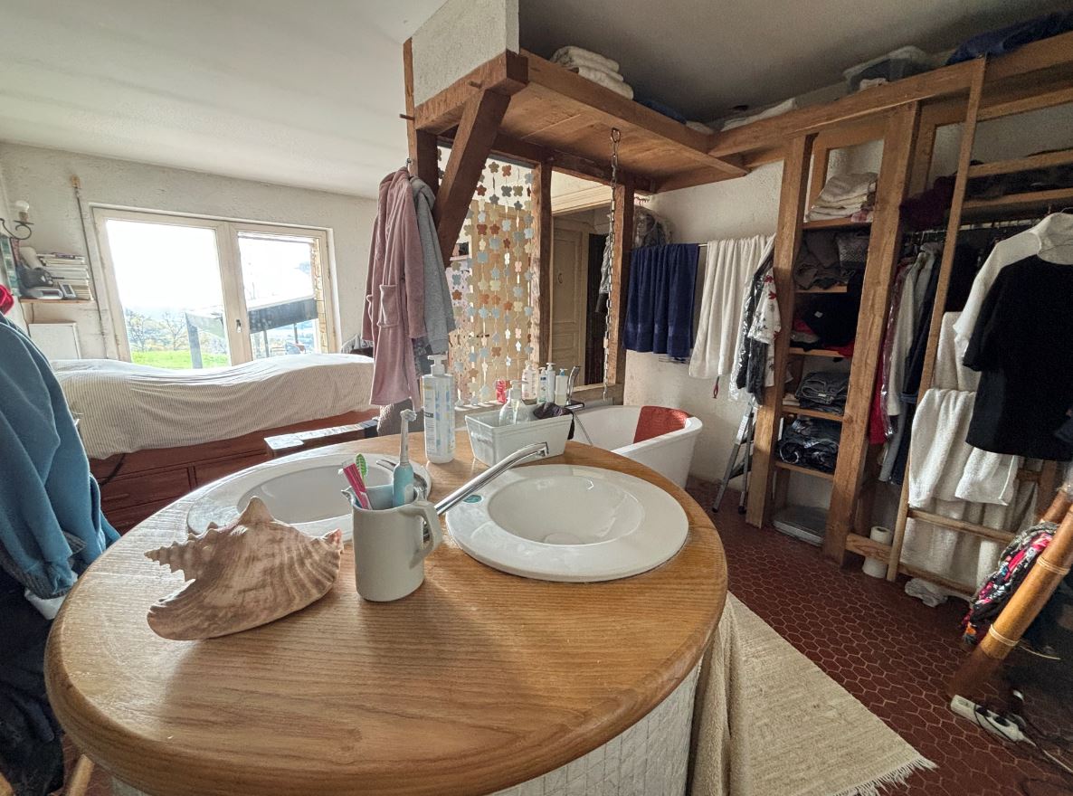 À l’étage, vous trouverez une mezzanine ainsi qu’une chambre avec salle d’eau et WC.